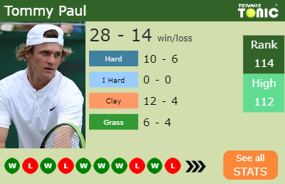 Paul has a 28-14 win-loss record in 2019, 10-6 on hard (See FULL STATS).