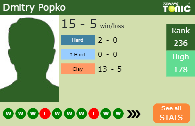 See updated oddsAs per the initial odds, Dmitry Popko is the pick to win this match.