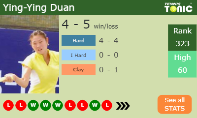 This will be the 3rd time that Kristina Mladenovic and Ying-Ying Duan face off. The head to head is 1-1 for Mladenovic and Duan (see full H2H stats), 1-0 on hard.