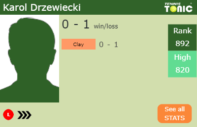 Drzewiecki has a 0-1 win-loss record in 2019, 0-1 on clay (See FULL STATS).