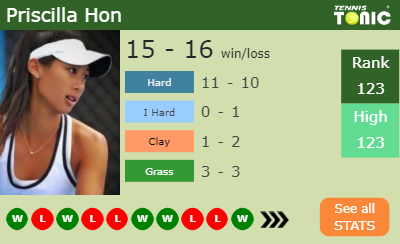 Priscilla has a 15-16 win-loss record in 2019, 11-10 on hard (See FULL STATS).