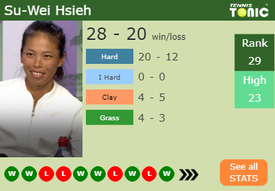 Hsieh has a 28-20 win-loss record in 2019, 20-12 on hard (See FULL STATS).