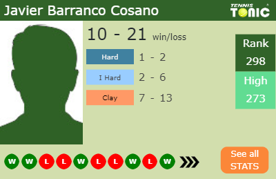 Barranco Cosano has a 10-21 win-loss record in 2019, 7-13 on clay (See FULL STATS).