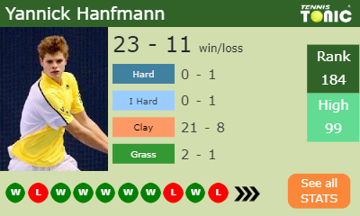 There is no head to head record between Yannick Hanfmann and Carlos Alcaraz Garfia since this will be the first time that they will clash against each other at pro level.