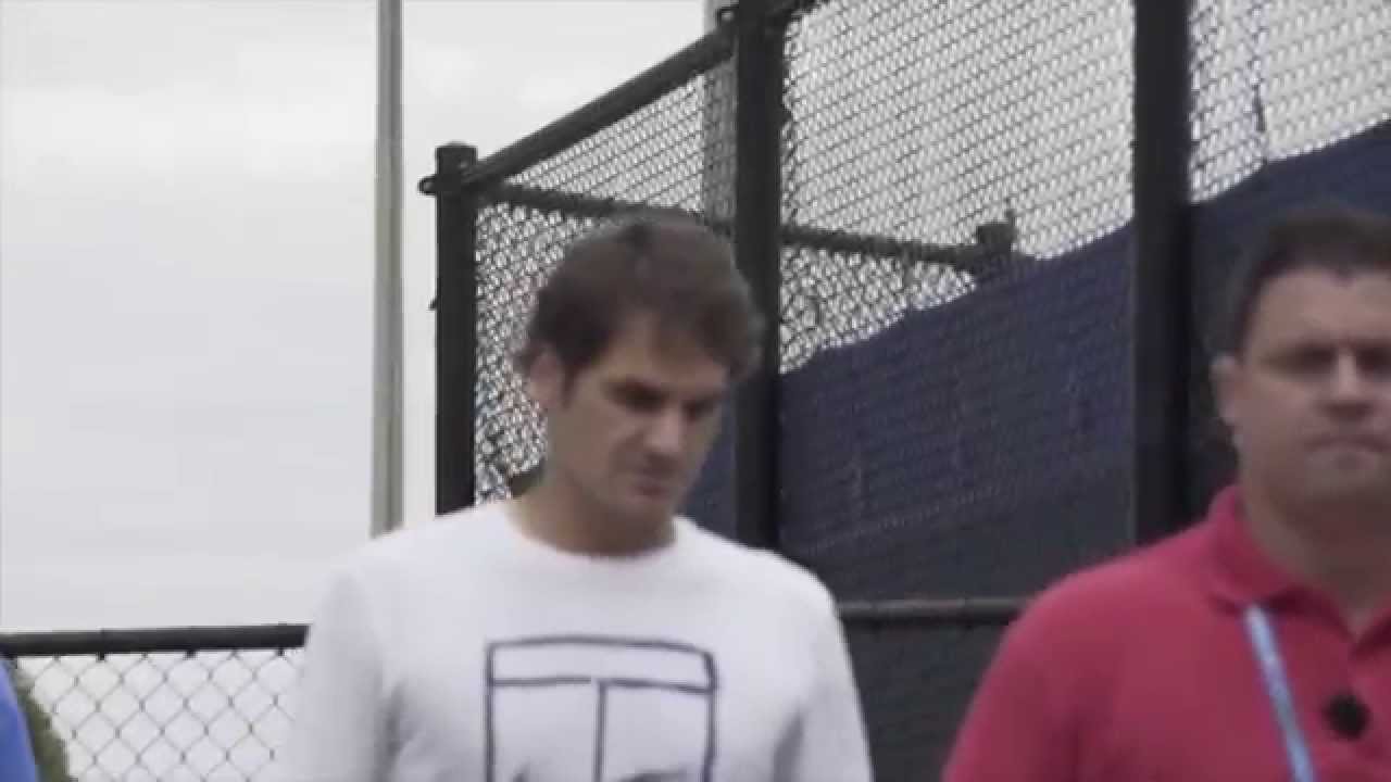 Roger Federer hit the practice courts ahead of the 2015 Brisbane International Final