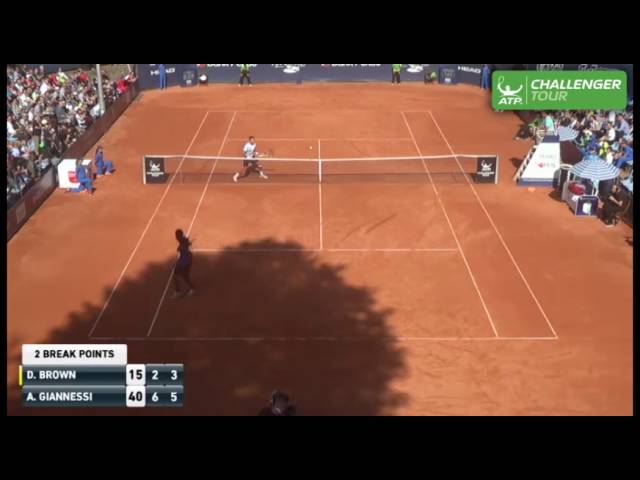 Dustin Brown is at it again, striking a stunning hot shot to save a match point in the final of the ATP Challenger Tour event in Szczecin, Poland.