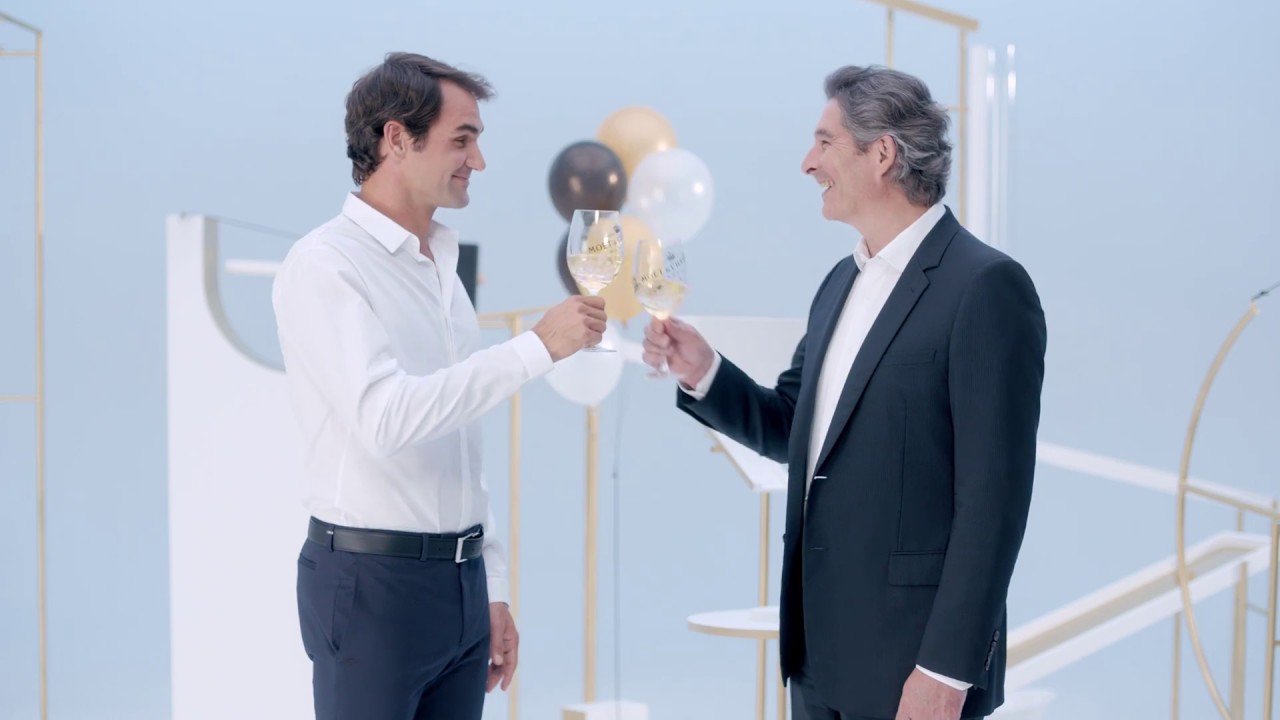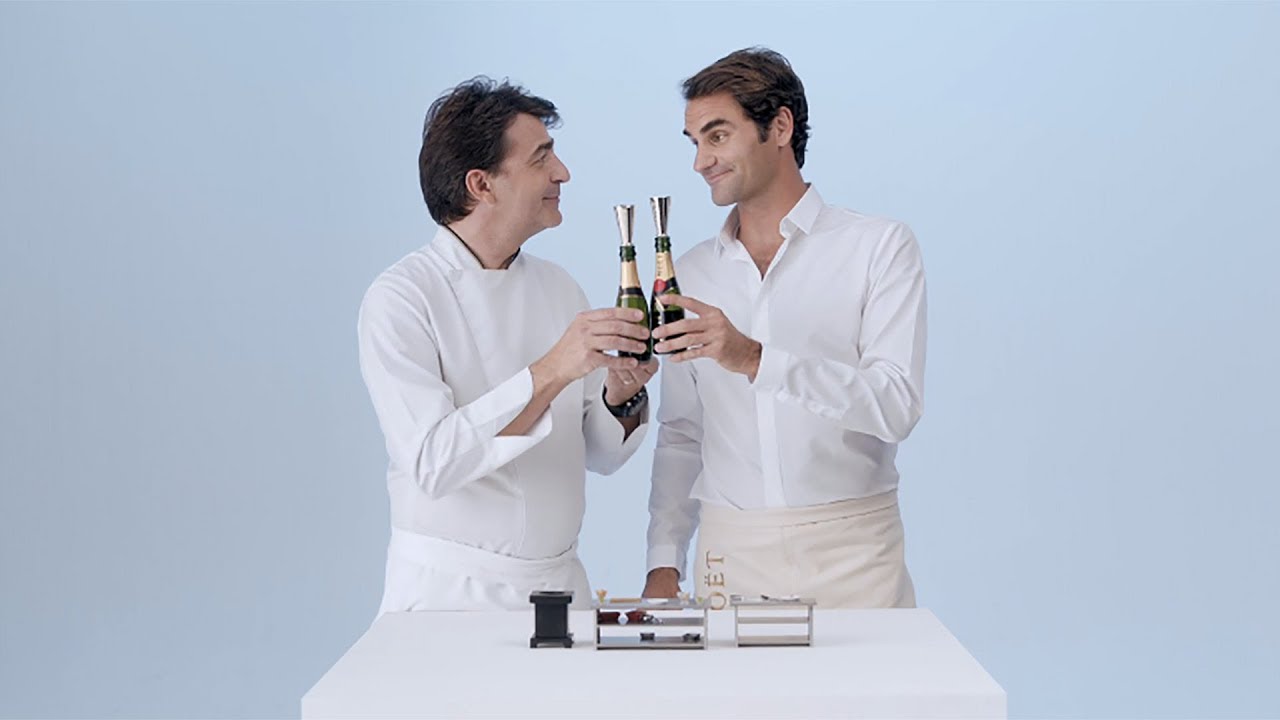 Roger Federer learns the perfect serve from Benoit Gouez, the Moet