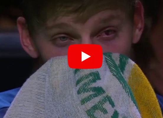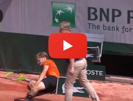David Goffin is forced to retire against Horacio Zeballos after he slides into the tarp at 2017 Roland Garros