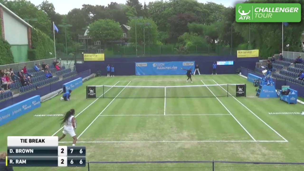Hot shot machine Dustin Brown was at it again on Wednesday at the Manchester Challenger, laying out for a dive volley winner and striking a stunning tweener.