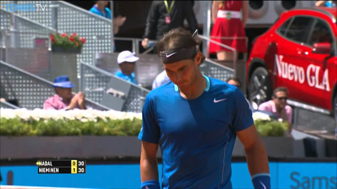 Jarkko Nieminen's quick hands save him from a Rafael Nadal charge in
