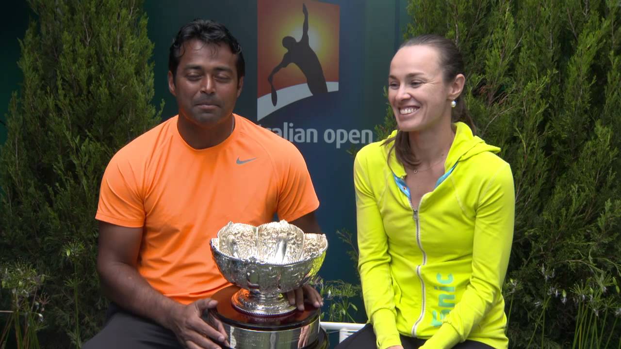 Mixed doubles winners Martina Hingis and Leander Paes speak about their win, with Leander winning his second mix doubles trophy, 12 years after his first.