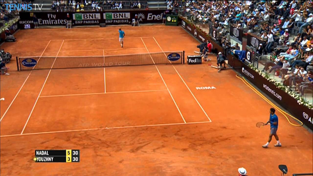 A flick of a wrist transforms into a Rafael Nadal Hot Shot against Mikhail Youzhny in Rome.