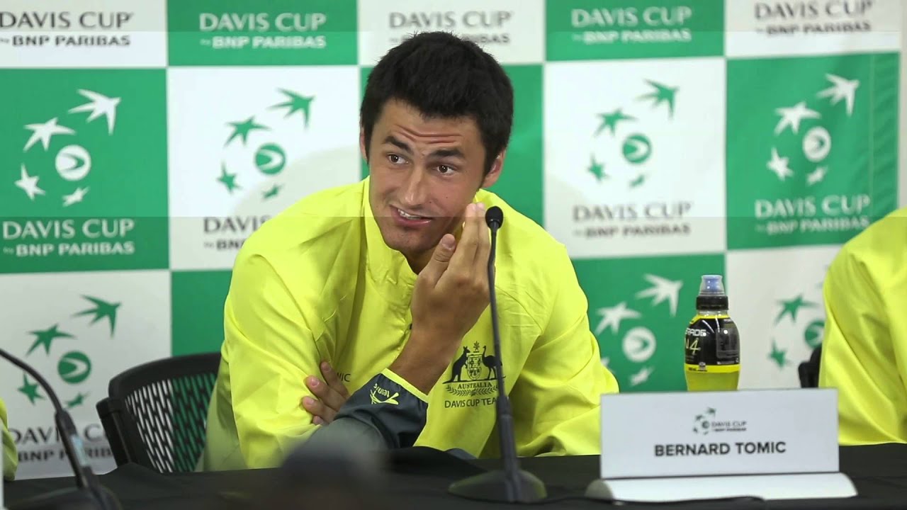 Lleyton Hewitt, Bernard Tomic, Sam Groth and John Peers preview the weekend`s Davis Cup tie against USA at Kooyong Lawn Tennis Club.